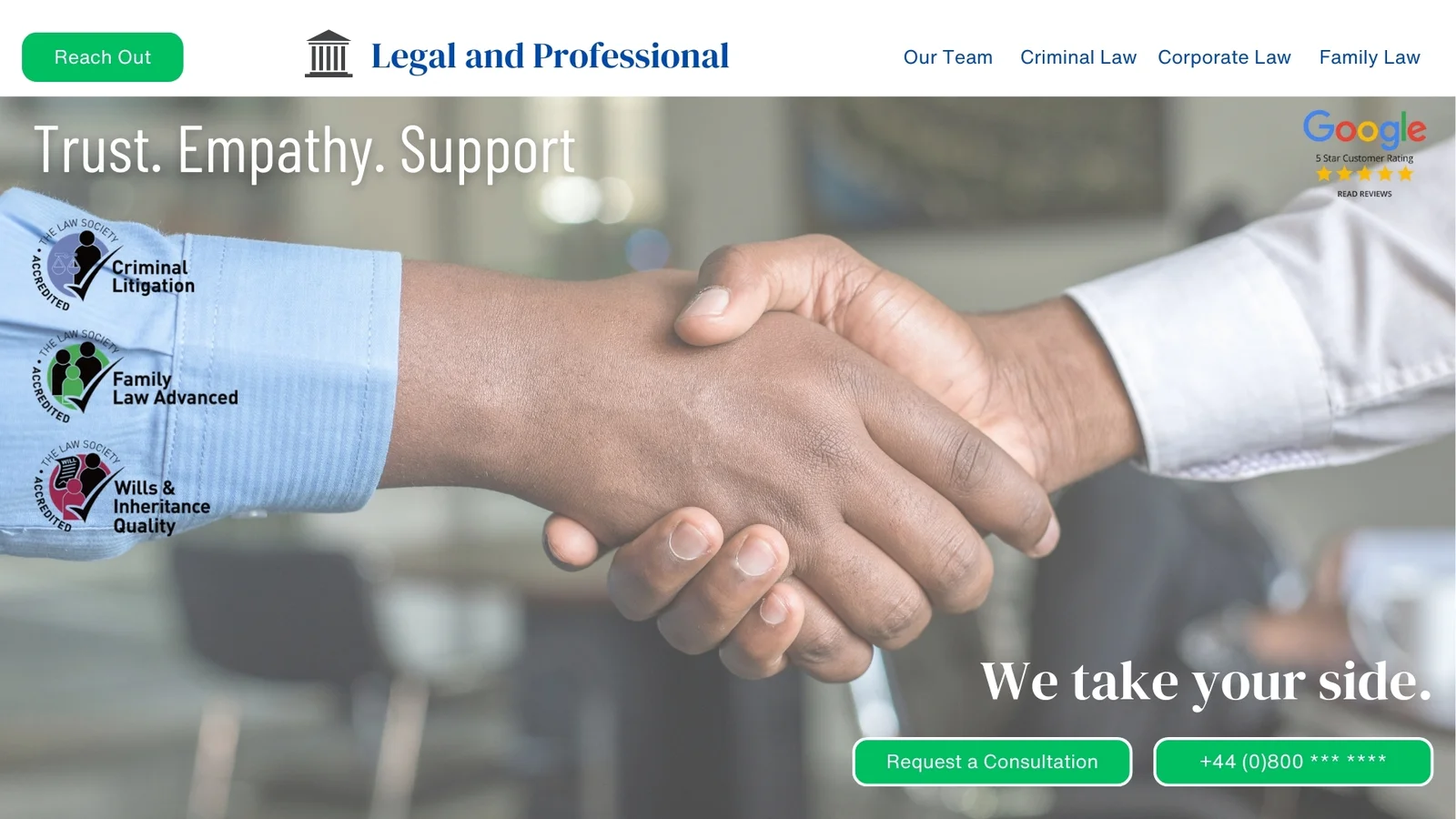 When it comes to an important factor that effects lives, a website must deliver the message efficiently, immediately and reassuringly. Using the main hero image of a handshake and showcasing industry credentials reinforces the message you will find professional support here. The word choice is designed to put the visitor at ease and the simple navigation crafted so as not to overwhelm.